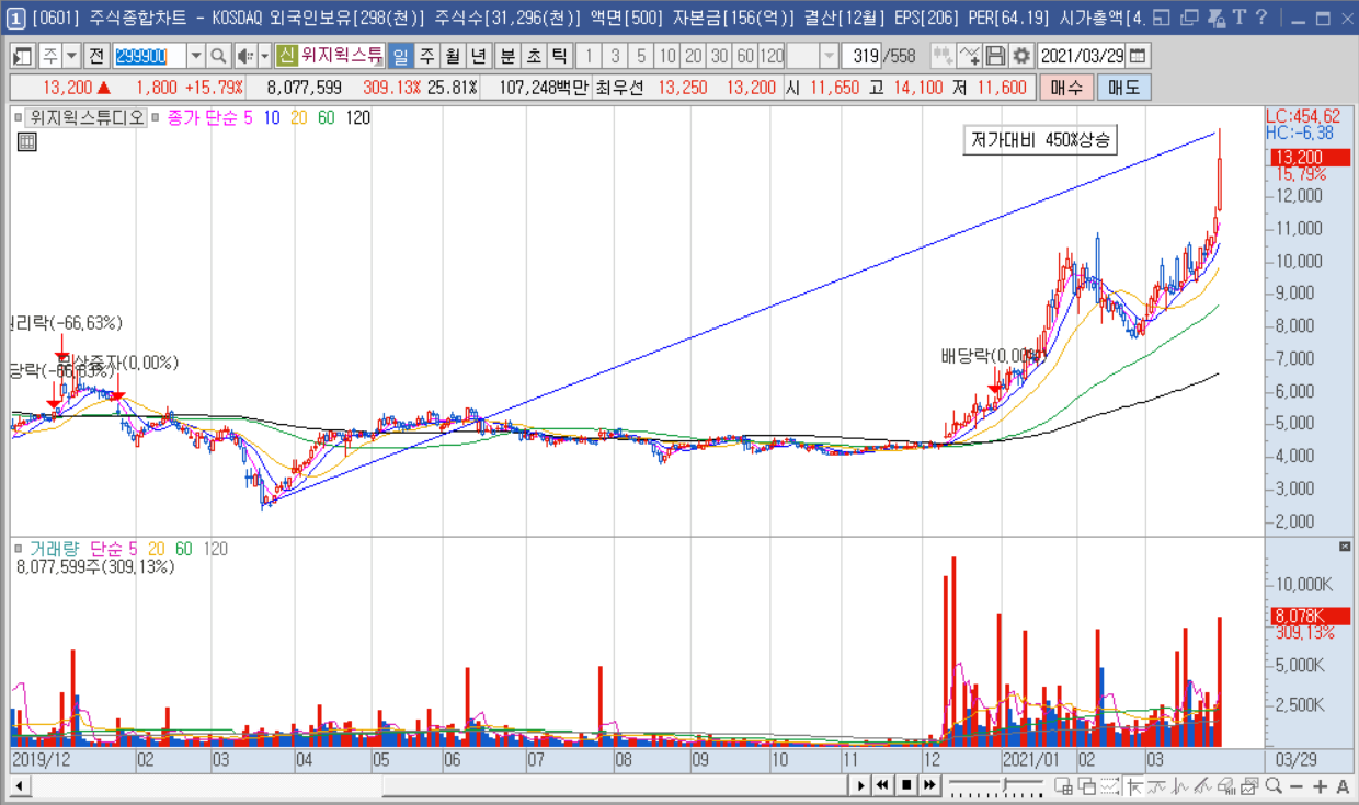 메타버스 관련주인 위지윅스튜디오가 오늘 급등세를 보이고 있는데요.