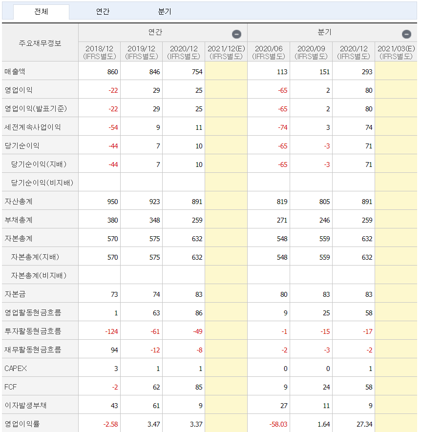 재무재표를 보면 최근들어서 매출액고 영업이익이 좋아지고 있다는 것을 알 수 가 있는데요.