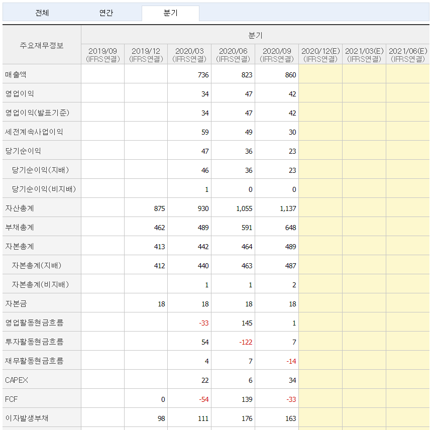 재무재표를 보면 코로나19기간에도 매출과 영업이익이 줄지 않았다는 것이 특징입니다.